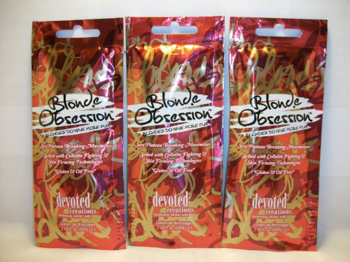 It's true what they say, blondes really do have more fun! Blonde ObsessionTM is for the ultimate tanning goddess who demands the best! This dark tanning maximizer utilizes the skin toning and tightening benefits of Revita Fit, Ideal Lift and Body Fit to fight skin's sagging, reduce the appearance of cellulite and restore firmness to the skin. Intense tanning stimulators will ensure a perfect, just from the beach tan while the powerful anti-aging benefits of Matrixyl Synthe 6 will keeping your skin sexy, vibrant and youthful - just like your attitude. Dark spot corrector and after tan odor eliminators perfectly compliment this tanning cocktail... So go ahead, have a Blonde Moment.